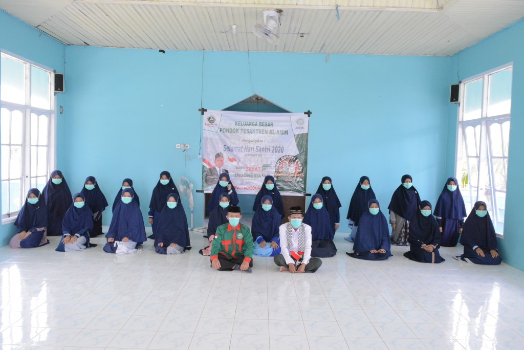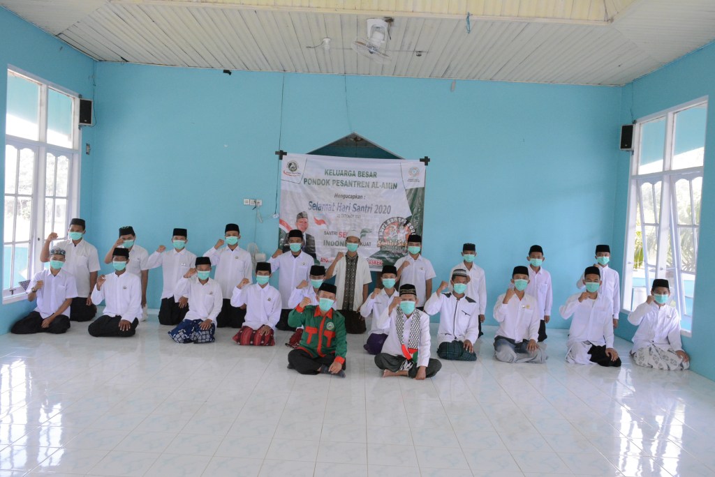 Hari santri tahun 2020 kembali diperingati oleh warga pondok pesantren Al Amin baik dari pimpinan, ustadz-ustadz, serta para santri. Dengan menggunakan protokol kesehatan seperti menggunakan masker dan menjaga jarak, rangkaian peringatan hari santri 2020 dimulai dengan mengadakan upacara bendera, dipimpin oleh inspektur upacara pimpinan pondok pesantren Al Amin ustadz Suryani Jiddy, Lc serta komandan upacara saudara Izlan. upacara dimulai dengan pengibaran bendera merah putih dengan petugas pengibar bendera, saudara Muhammad Fauzi, Muhamad Atiq Adani, dan Bayu Andrean. selanjutnya seluruh peserta upacara menyanyikan lagu Indonesia Raya serta Mars Hari Santri Nasional. selanjutnya penyampaian amanat oleh Inspektur Upacara, dalam amanatnya, ustadz Suryani Jiddy, Lc menekankan bahwa hari santri diperingati untuk mengenang perjuangan para santri dalam melawan penjajah yang dipimpin dan digelorakan oleh para ulama, sehingga kita sebagai generasi muda santri harus selalu meneladani semangat perjuangan para santri terdahulu dalam mengusir penjajah dari Tanah Air. selanjutnya upacara ditutup dengan pembacaan doa yang di pandu oleh saudara Yusep Ahmad.