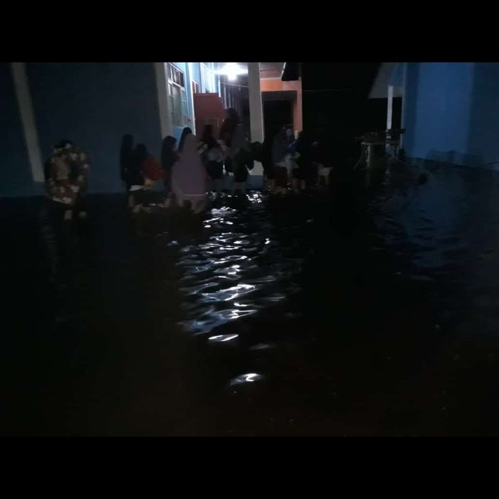PONPES-ALAMINKAPUAS.COM, PULAU PETAK. Banjir ROB Melanda Pondok Pesantren Al Amin, Senin (6/12/2021)dini hari.