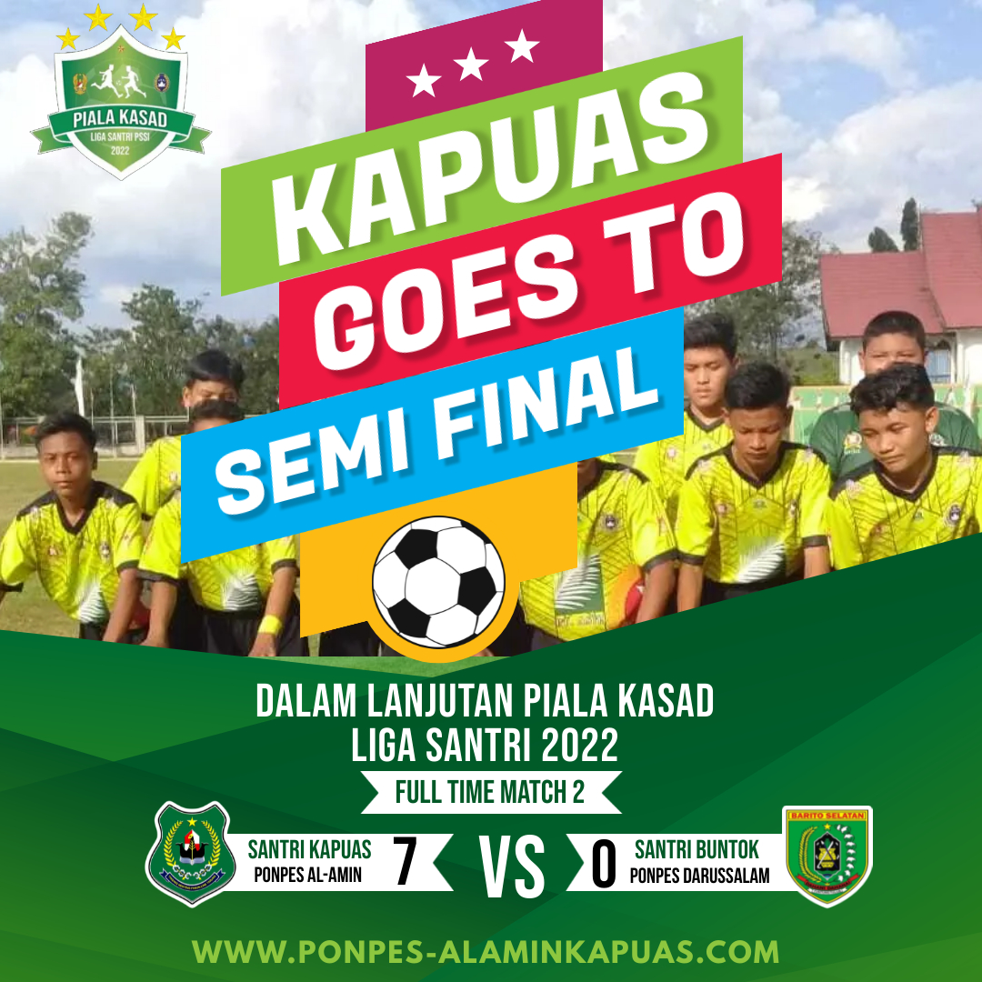 Pada babak semifinal nanti, Tim Ponpes Al-Amin akan menghadapi runner up group B yang baru akan digelar esok hari (10/8/2022) di stadion Senaman MAntikei Palangka Raya.