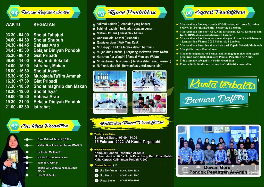 📝📝Yukk… Bapak/Ibu segera daftarkan putra dan putrinya di Pondok Pesantren Al-Amin baik tingkat Mts, MA, SMK Jurusan Farmasi dan Jurusan Perikanan…..